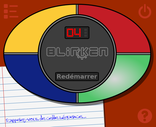 Jeu de type Simon. Il faut mémoriser et reproduire une succession de couleurs (et sons) qui va en augmentant. | ![]() |