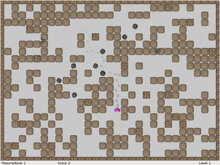 Basé sur Scorched Earth. Combat de tanks à tour de rôle. Sur ma Debian Testing (mars 2007), provoque une erreur de segmentation si lancement en tant que non root. |